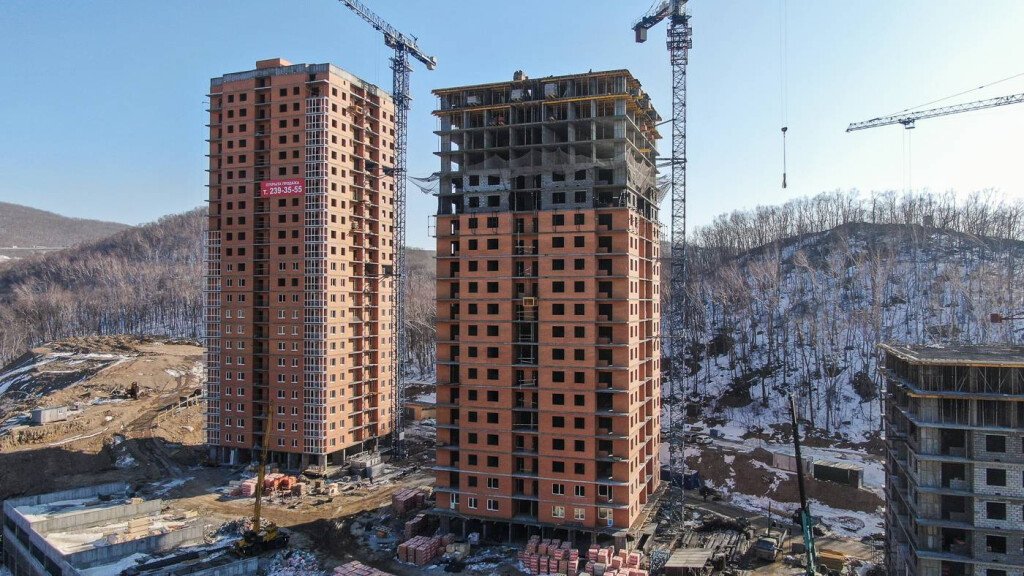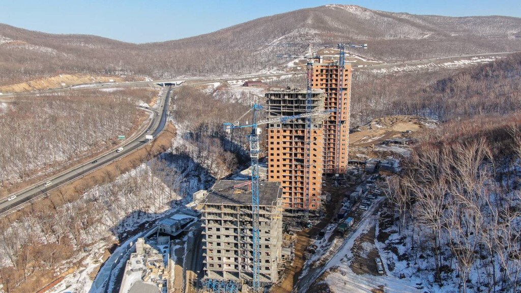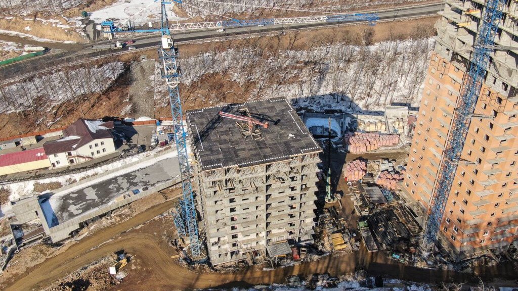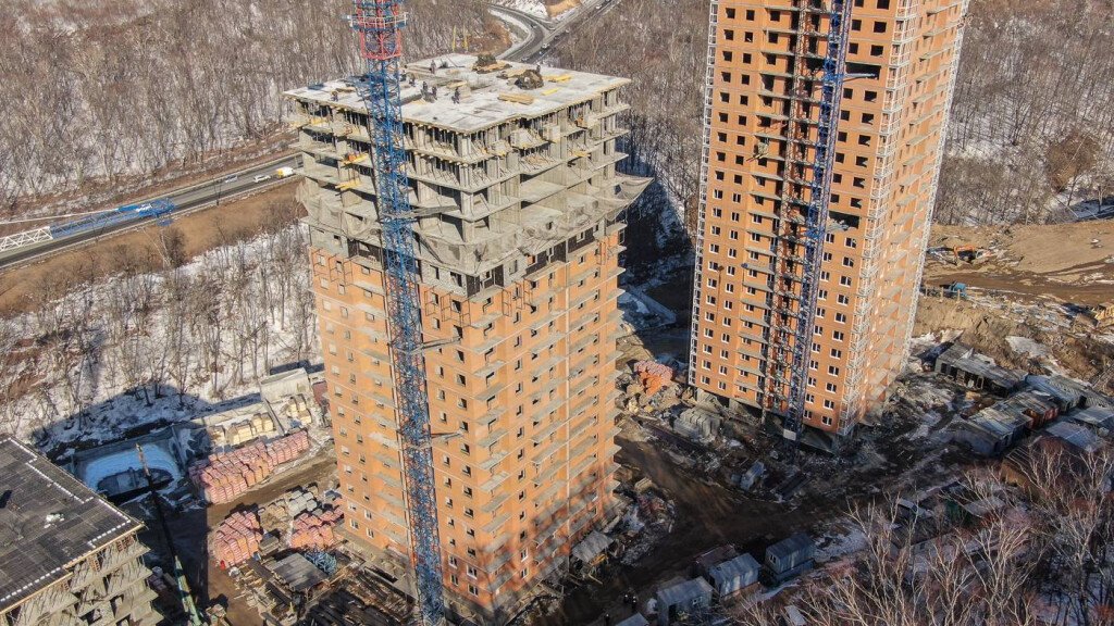 - Монолитные работы у второго дома ведутся на уровне 22-го этажа, у 3-го дома на 11-м этаже, в обоих домах продолжаются работы по кладке наружных стен;