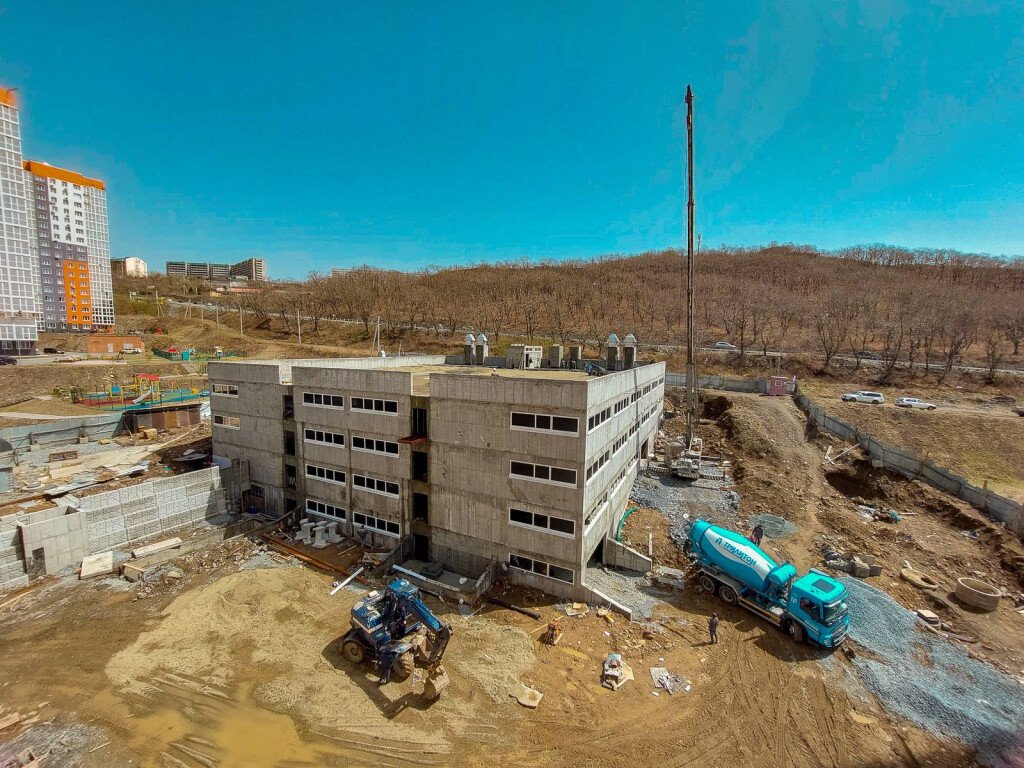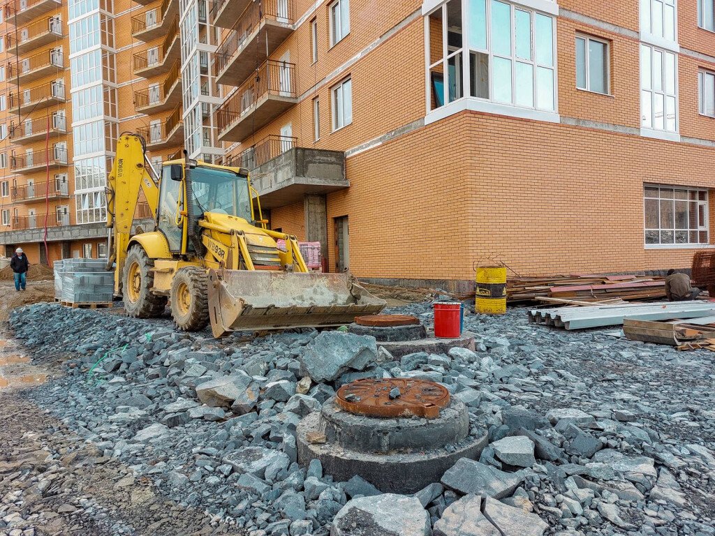 Также ведутся работы на прилегающей к дому территории и крытой автопарковке.