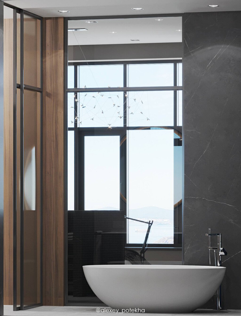 Высота витражных окон в этой эксклюзивной квартире – 6 метров! Только представьте, какой вид на бухту Патрокл и остров Русский будет открываться из гостиной!⠀