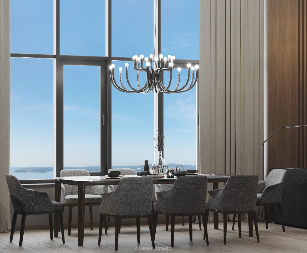 Высокие потолки 6 метров и панорамные окна делают этот пентхаус особенно светлым и просторным.⠀