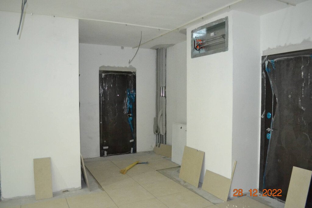 В этом году наши строители максимально потрудились! В домах уже подключено тепло и водоснабжение. Продолжаются работы по отделке мест общего пользования, начались работы по укладке керамогранита.