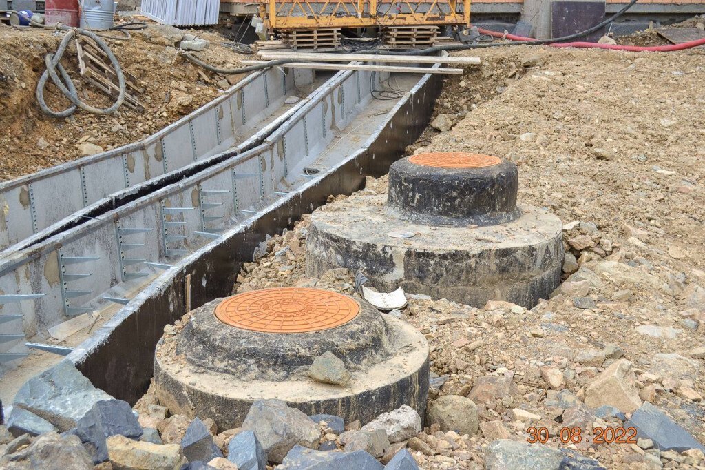 Работы на стройплощадке ведутся без перерывов и выходных! В домах продолжаются отделочные работы мест общего пользования. В третьем доме ведутся работы по монтажу стяжек со звукоизоляцией. Также продолжаются работы по подключению жилого комплекса к коммуникациям.