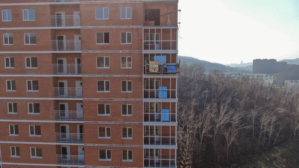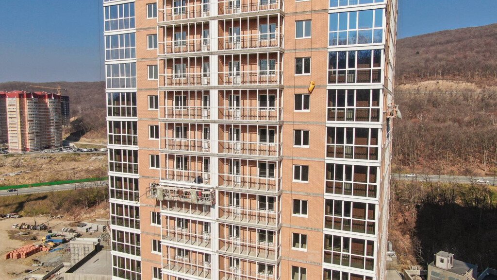 В доме №3 продолжается монтаж витражных окон и завершается остекление оконных проёмов.