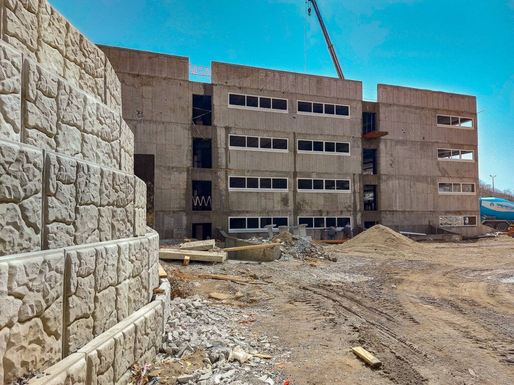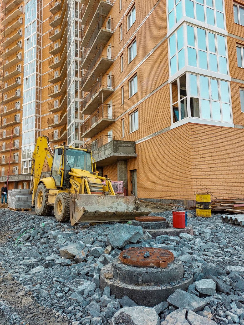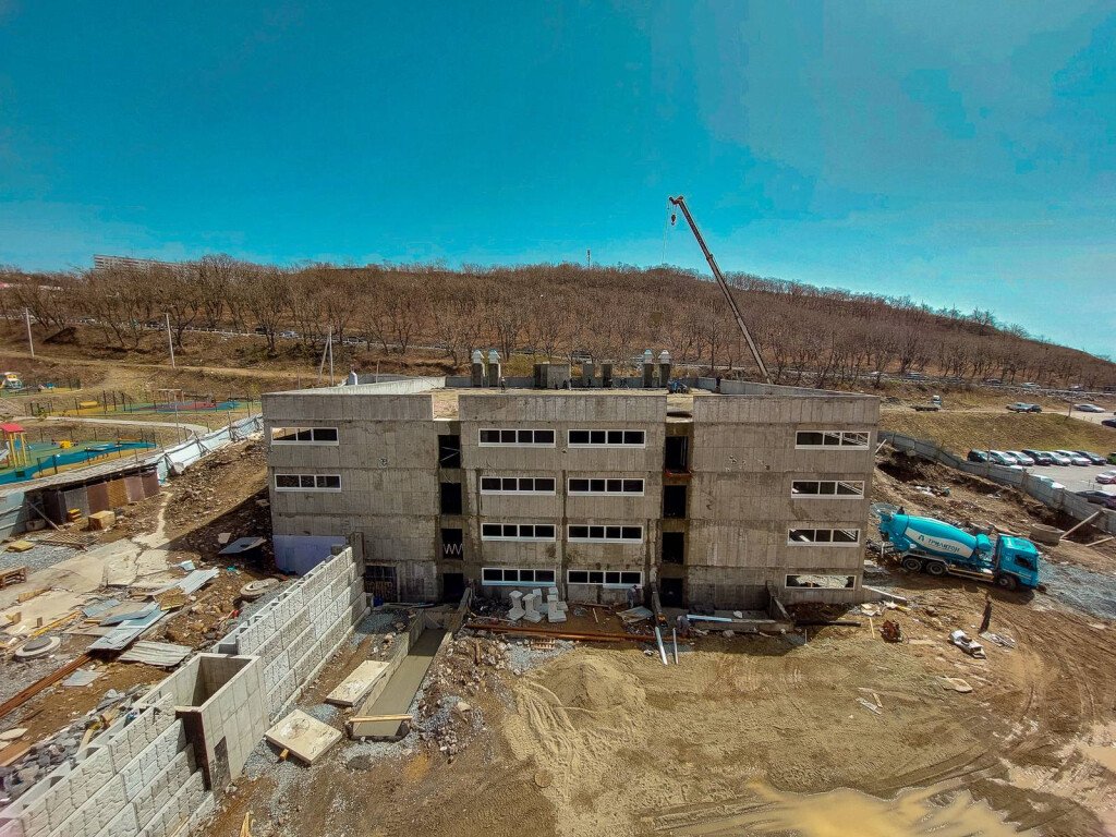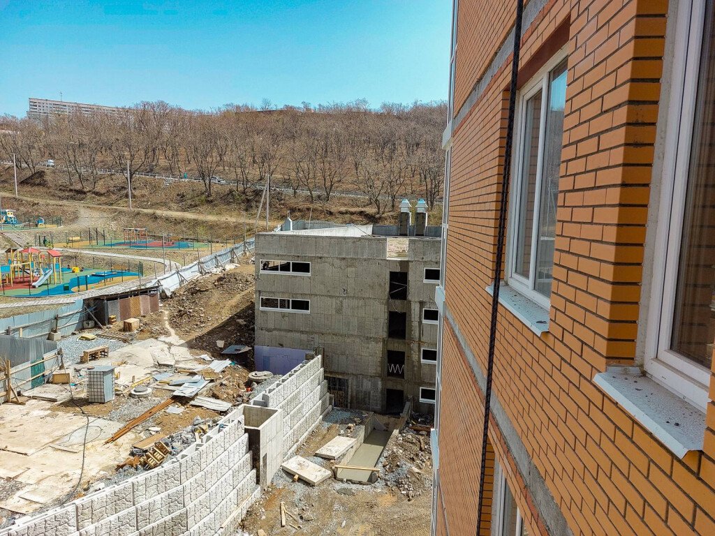 Также ведутся работы на прилегающей к дому территории и крытой автопарковке.