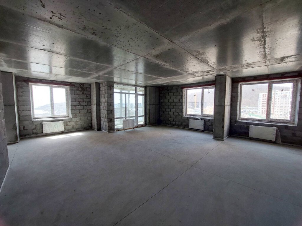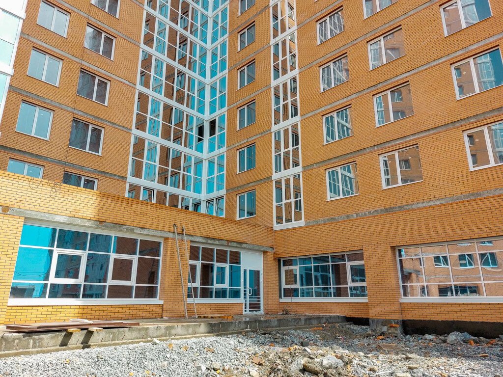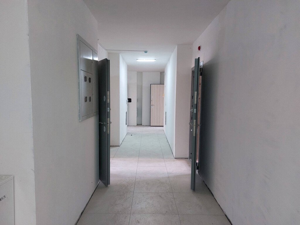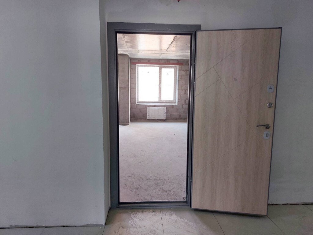 В квартирах выполнены работы по укладке стяжек со звукоизоляцией, а также монтажу входных дверей.