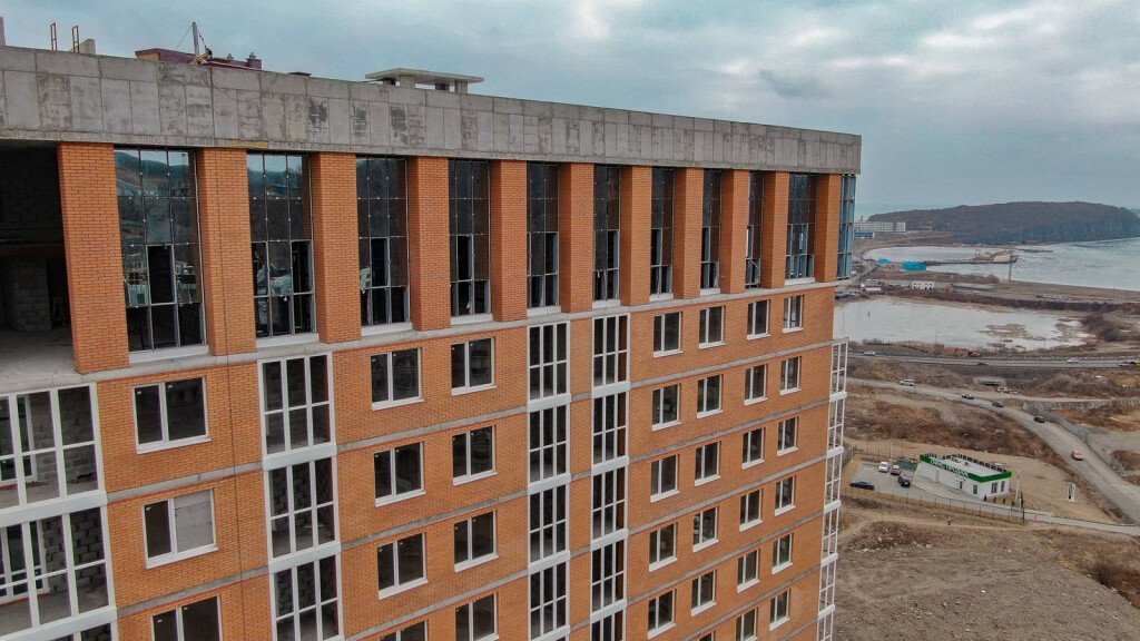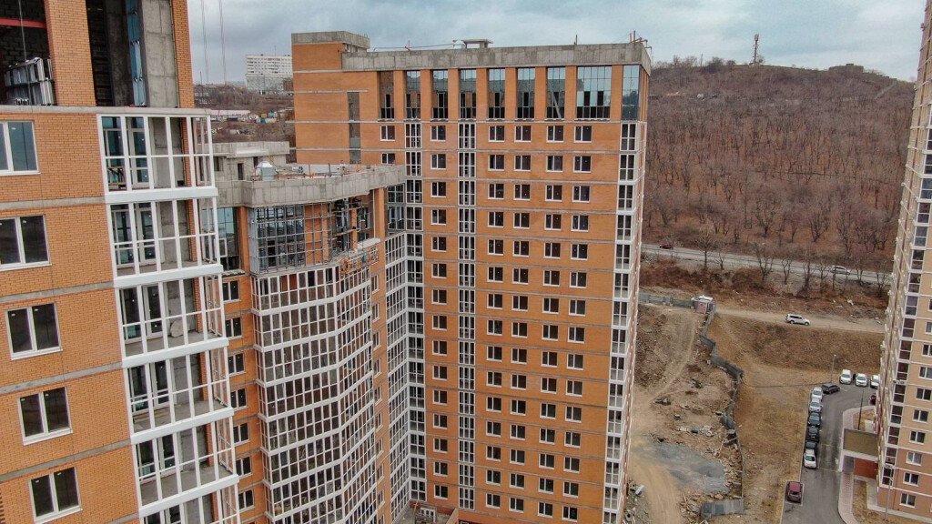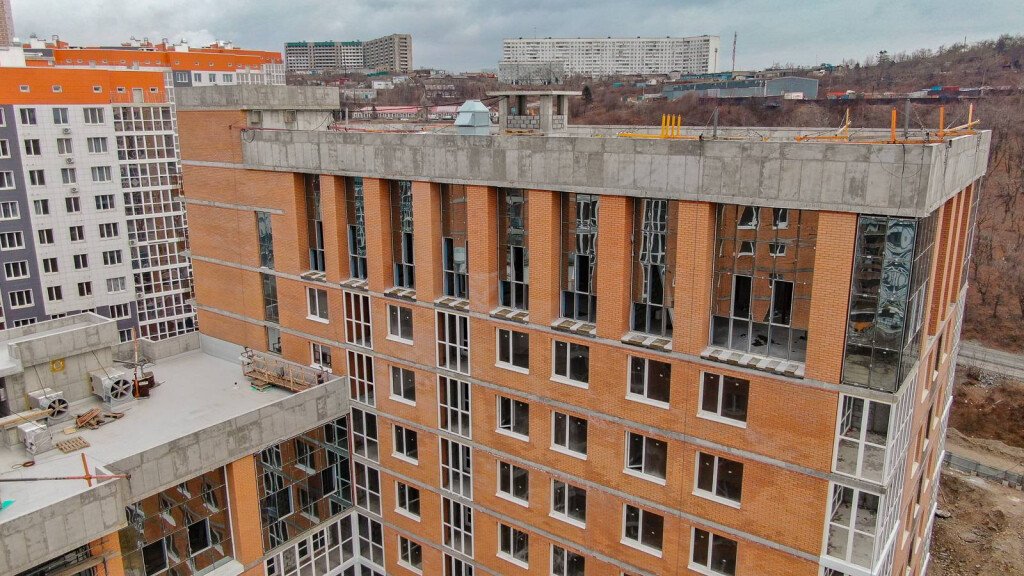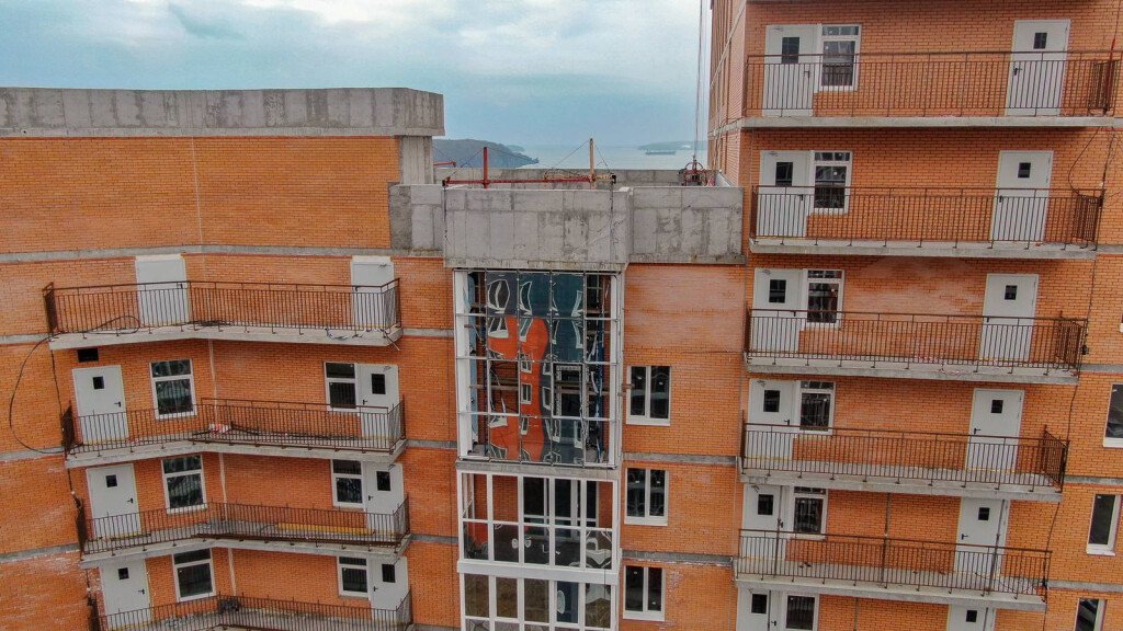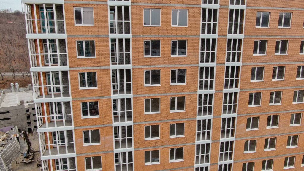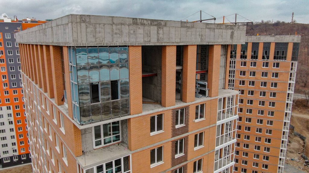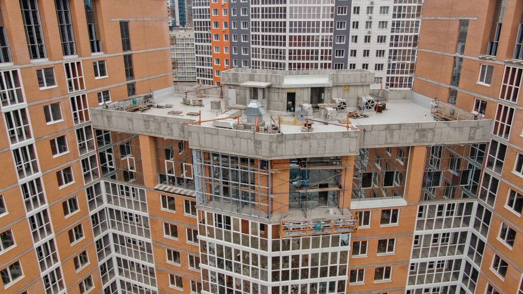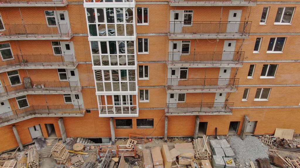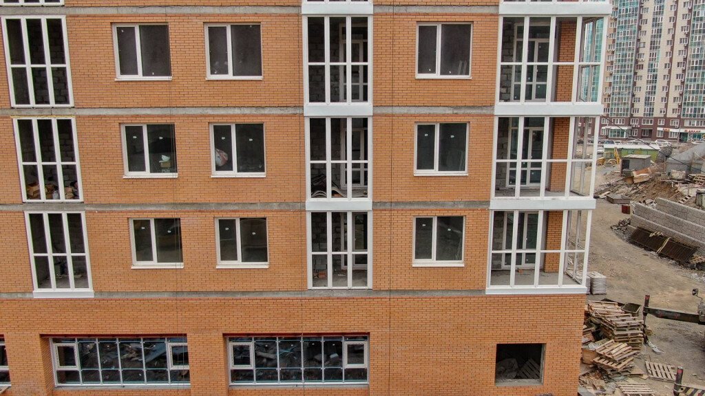 Завершен монтаж пластиковых профилей на витражах лоджий. Ведётся установка панорамных окон в квартирах со вторым светом.