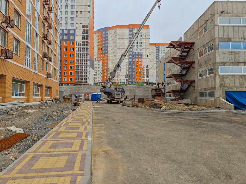 Кроме того, активными темпами идут работы по благоустройству прилегающей территории. Также ведутся работы в крытой автостоянке – нанесена разметка, окрашены стены и смонтированы демпферы.