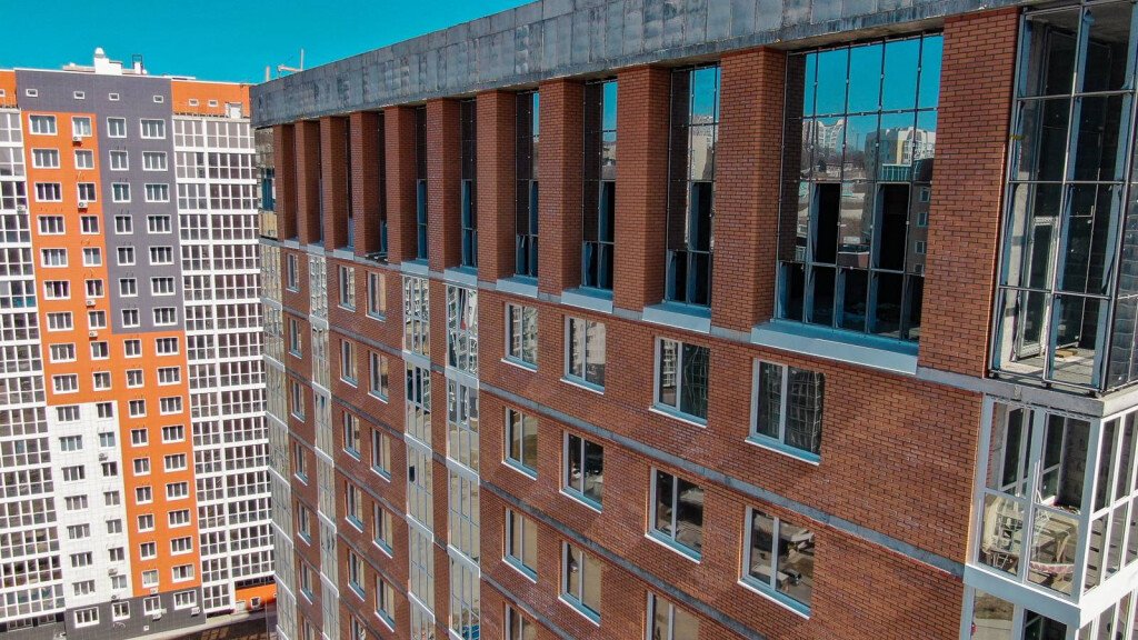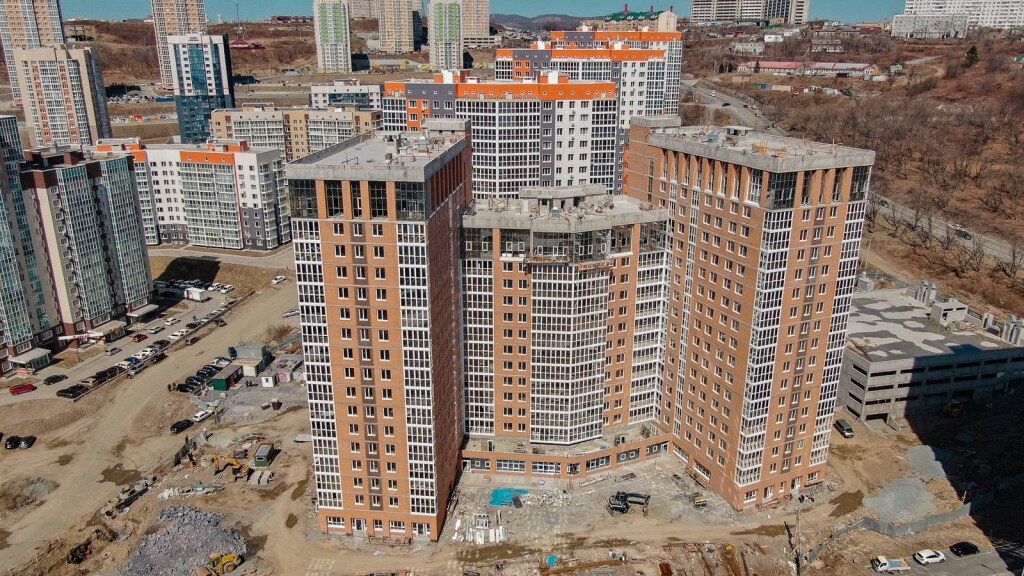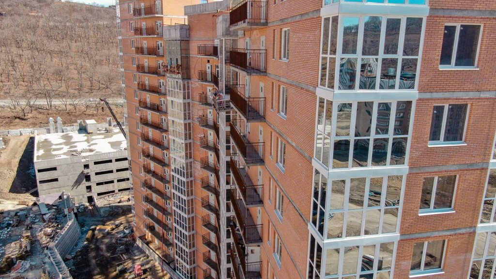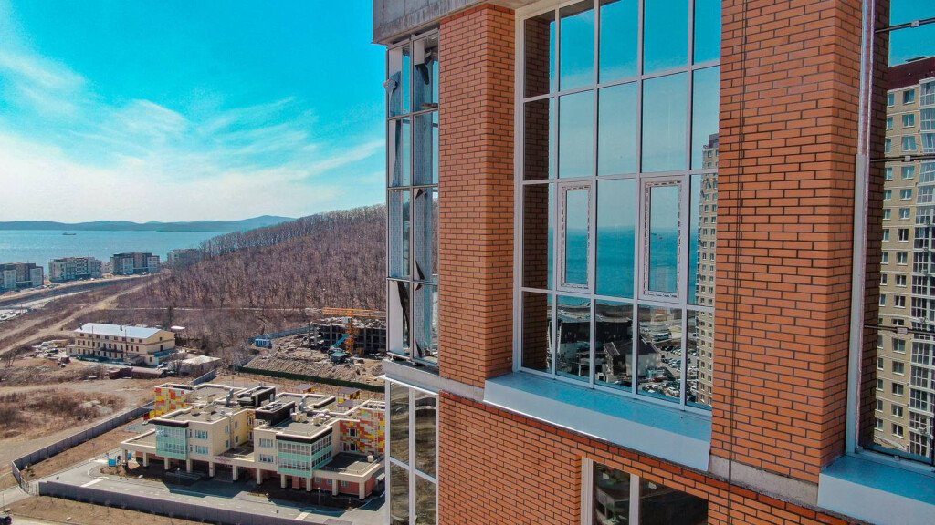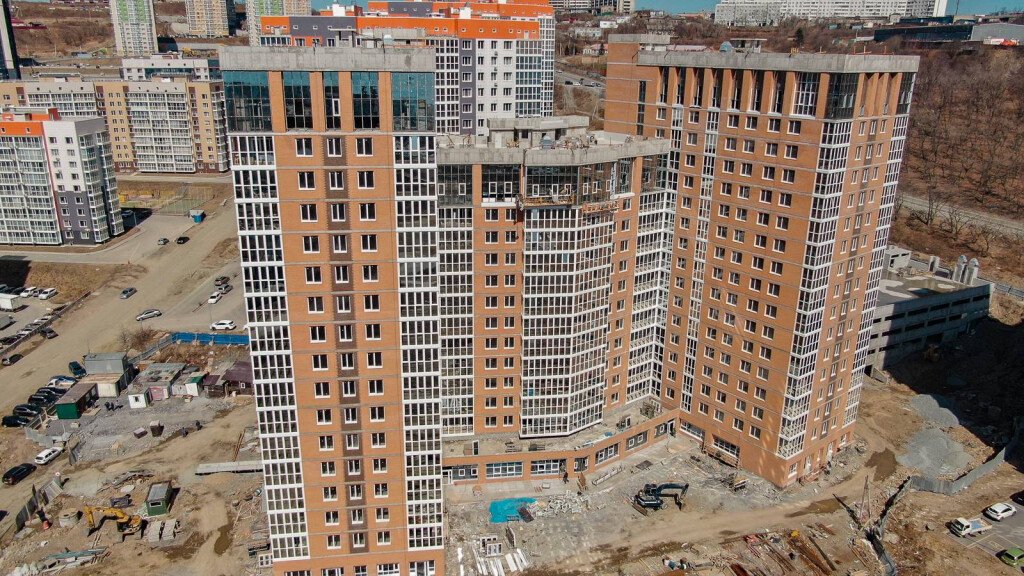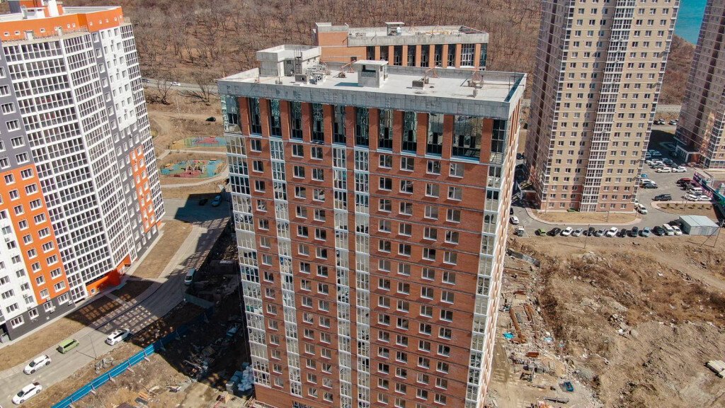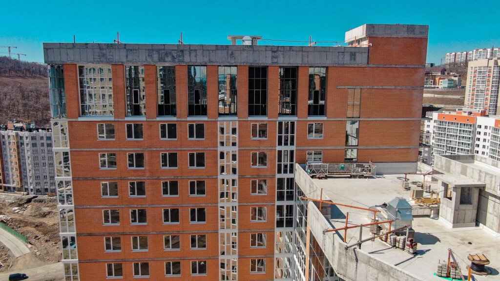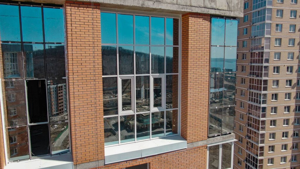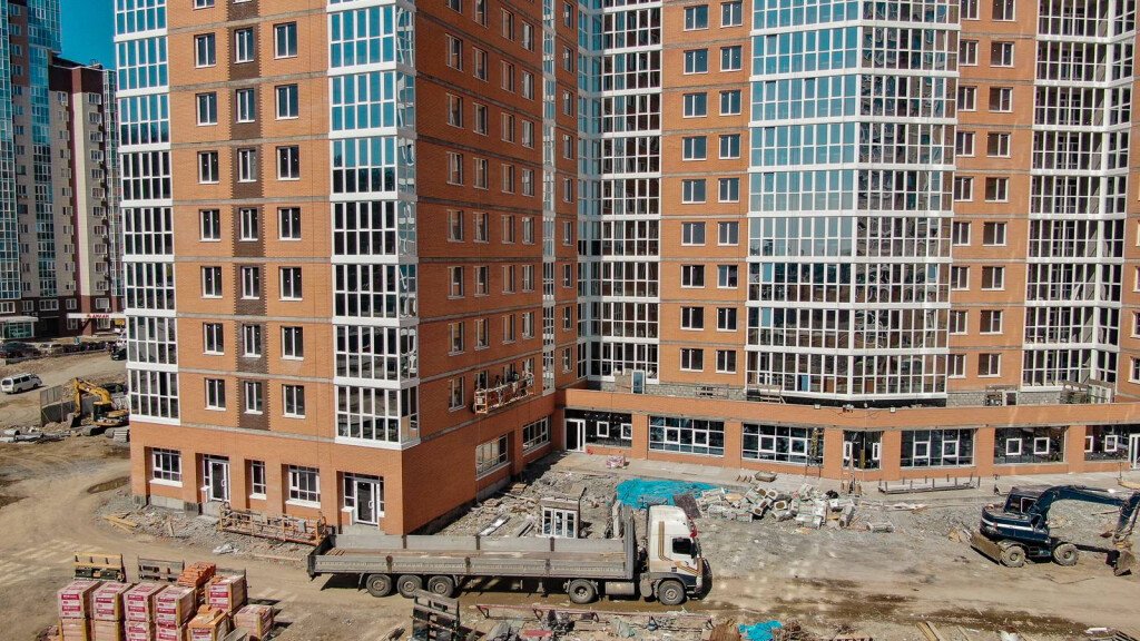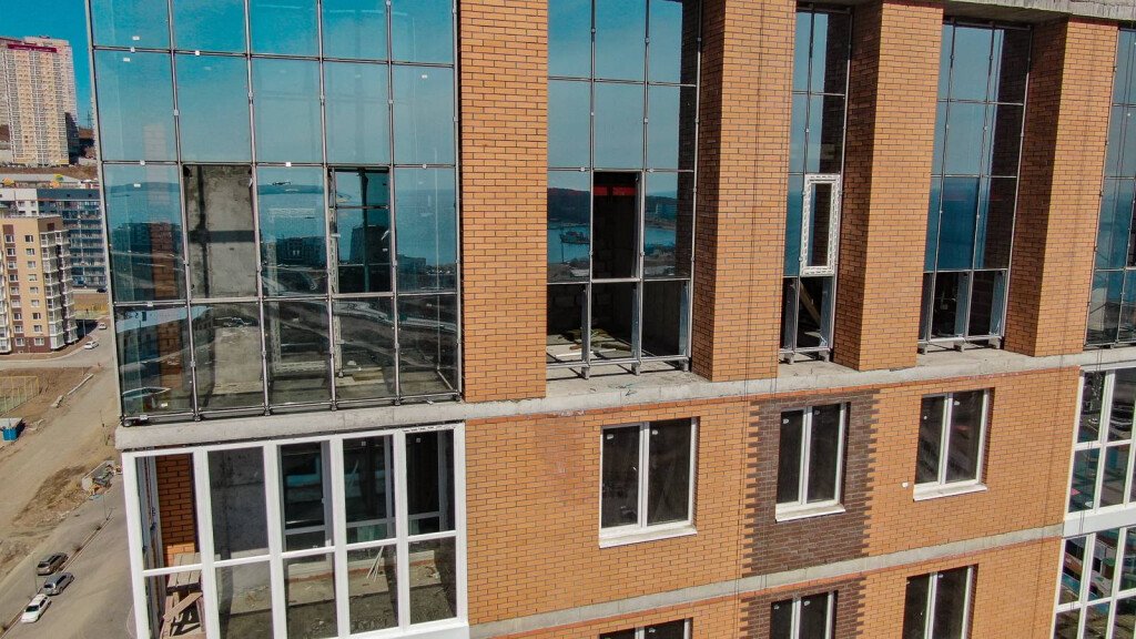 Активно ведутся работы по отделке в местах общего пользования. Продолжается установка стеклопакетов на витражах лоджий, а также панорамных окон в квартирах со вторым светом. Кроме того, на территории вокруг дома также ведутся работы.