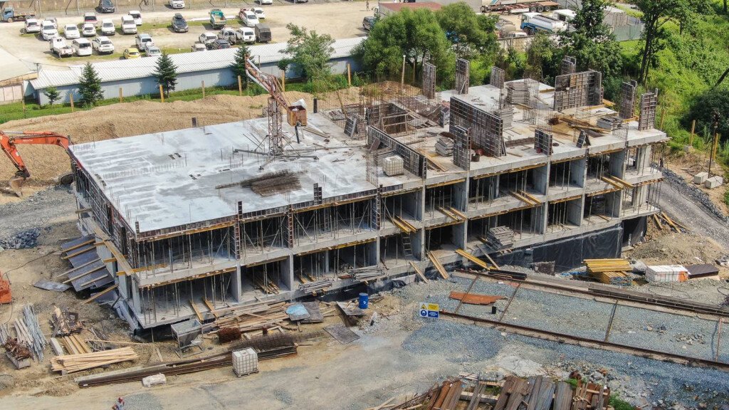 Завершены монолитные работы в доме №1, на крыше ведутся кровельные работы. Продолжаются работы по кладке наружных и внутренних стен. В доме №2 монолитные работы ведутся на уровне третьего этажа.