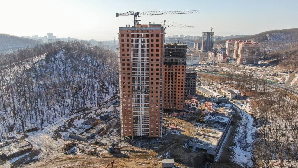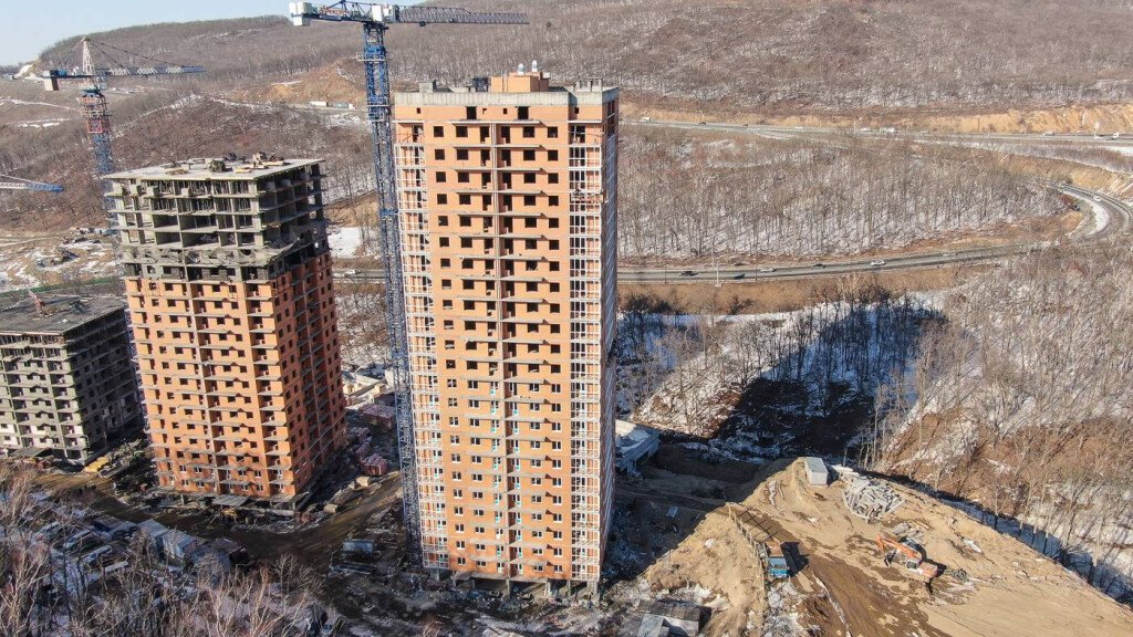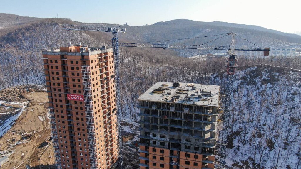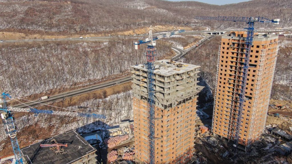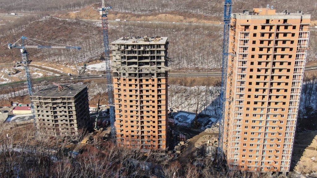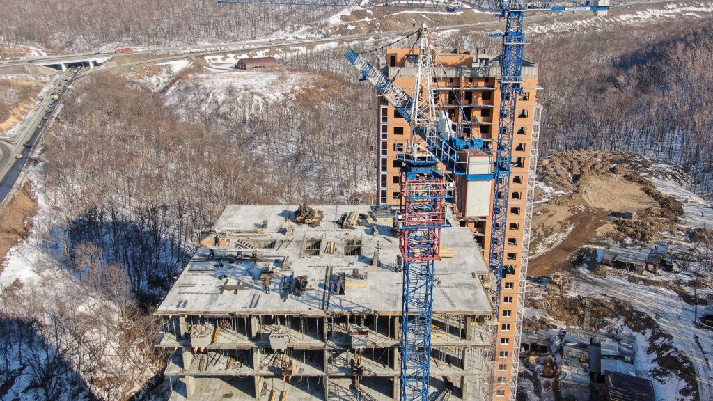 - Монолитные работы у второго дома ведутся на уровне 22-го этажа, у 3-го дома на 11-м этаже, в обоих домах продолжаются работы по кладке наружных стен;