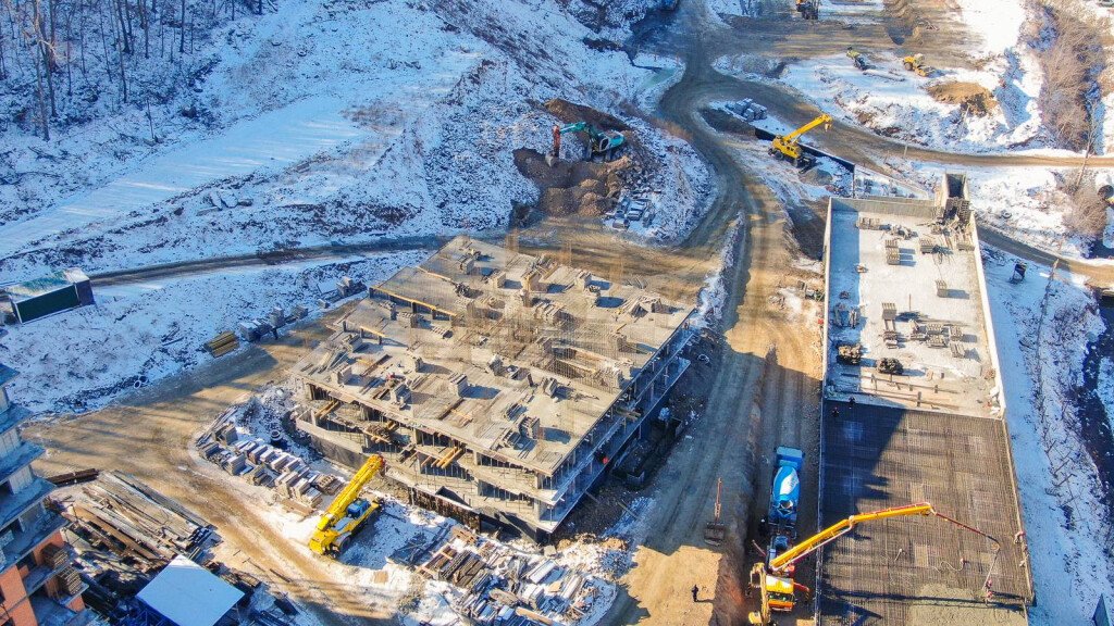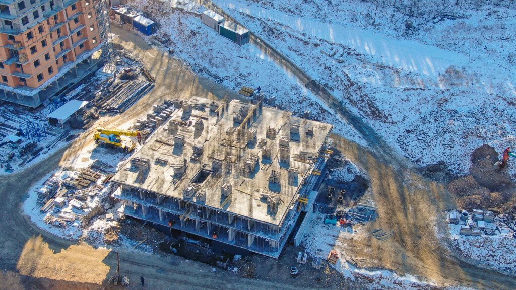 - на финишной прямой возведение монолитов у крытых авто парковок.