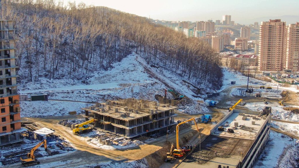- завершаются работы по возведению монолитного каркаса в доме №1;
