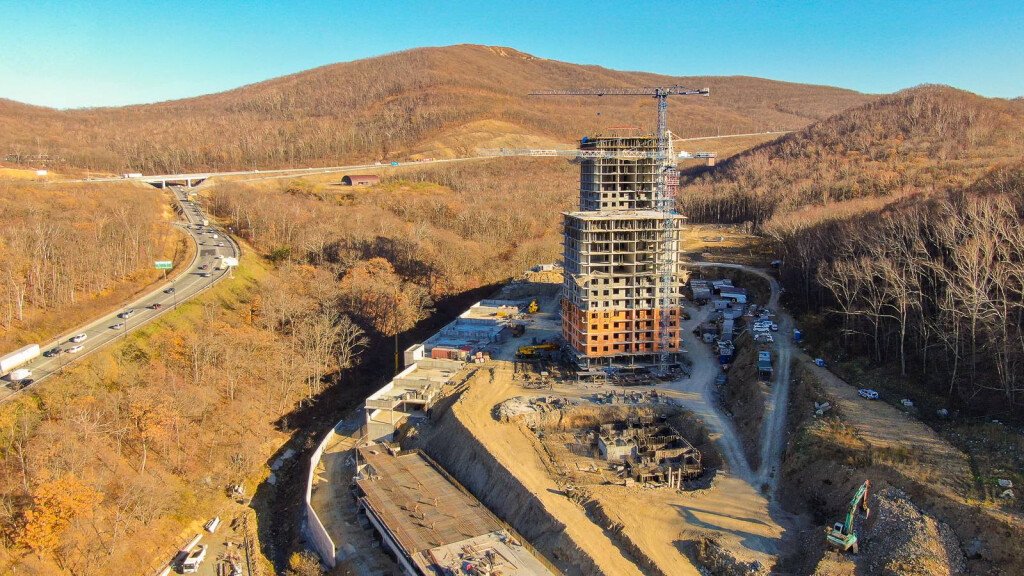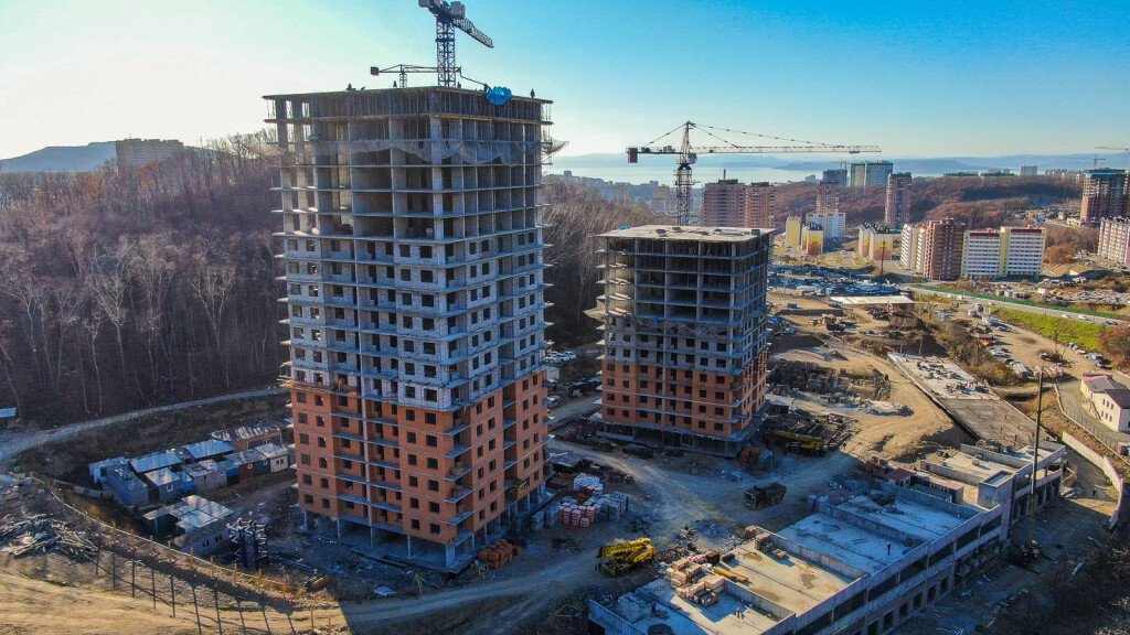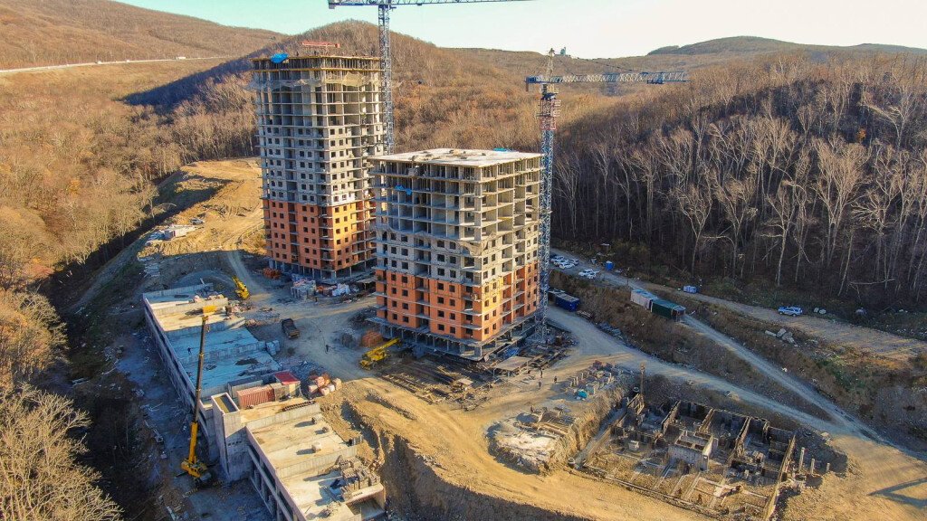 - работы по заливке монолитного каркаса в доме №1 ведутся на уровне 20-го этажа, а в доме №2 на уровне 13-го этажа.
