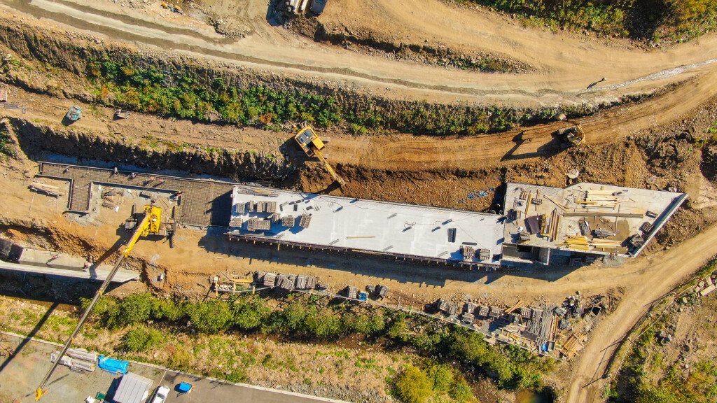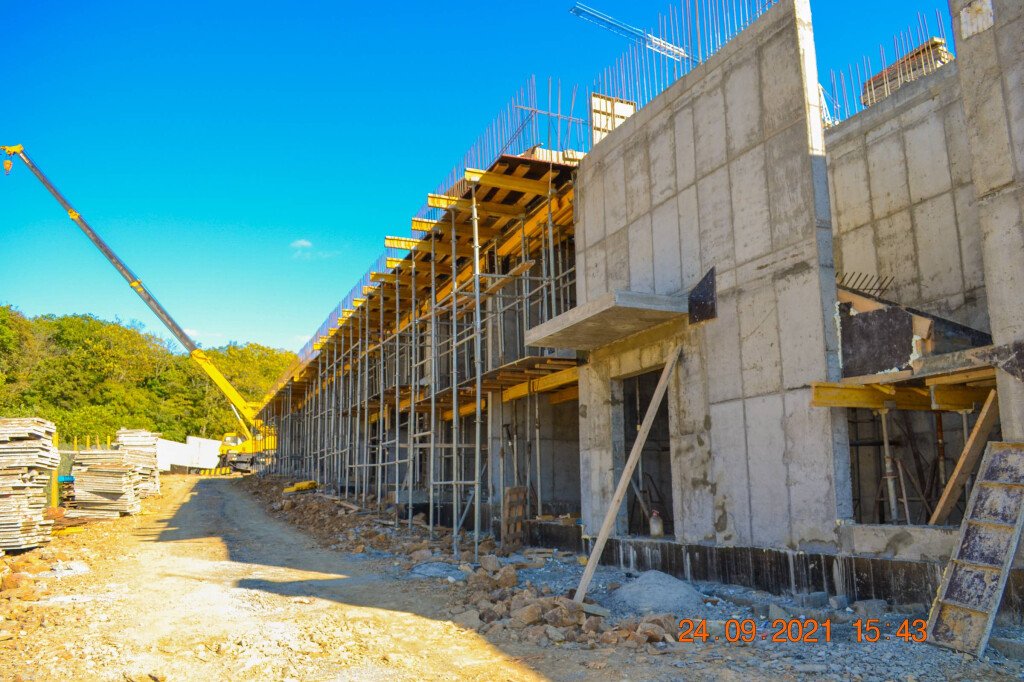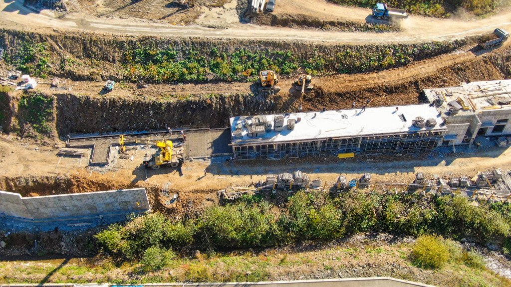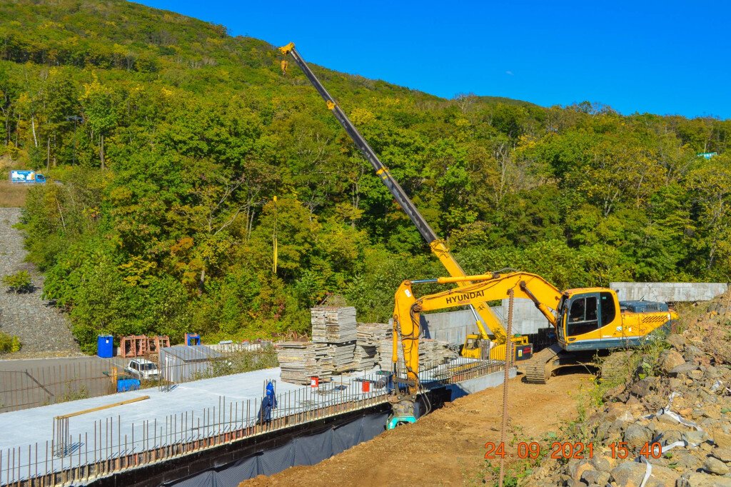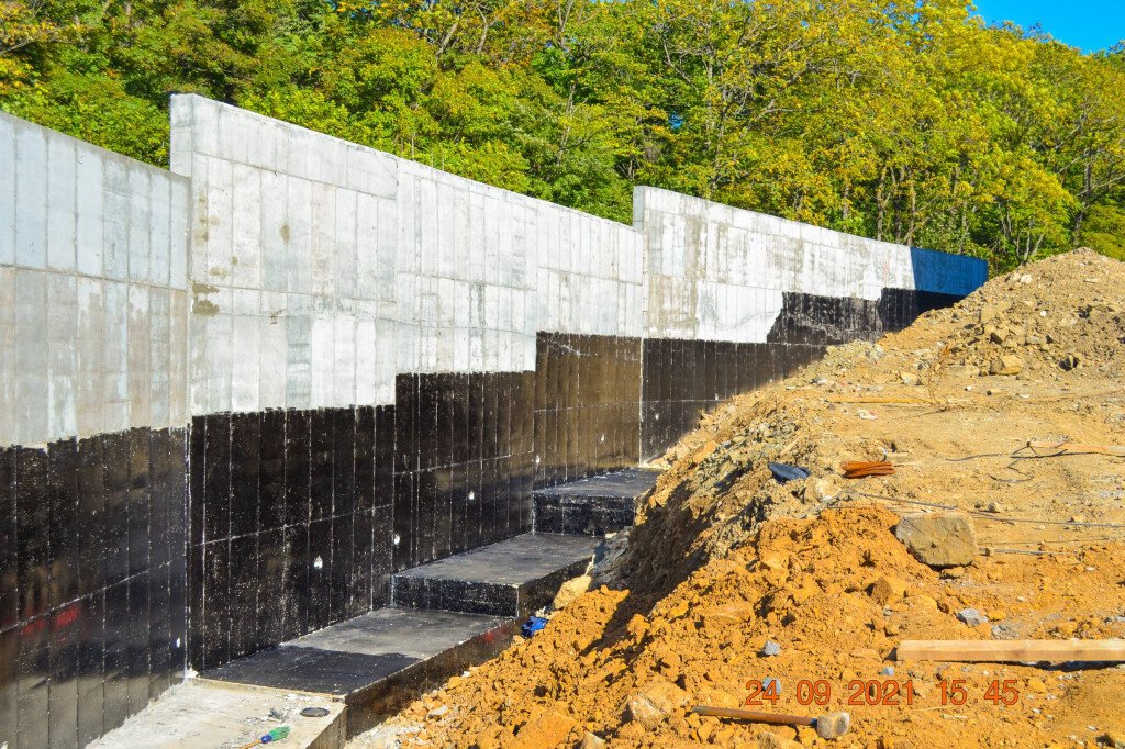 Возведена опорная стена у крытой автостоянки, а также продолжаются монолитные работы по возведению паркинга.