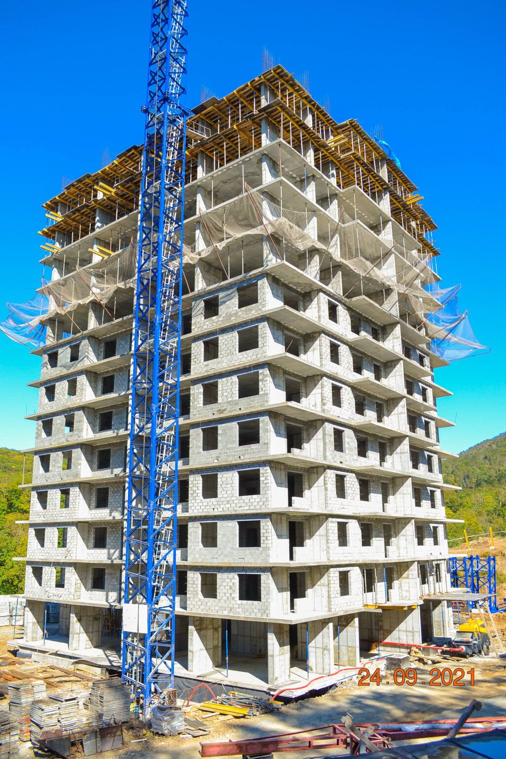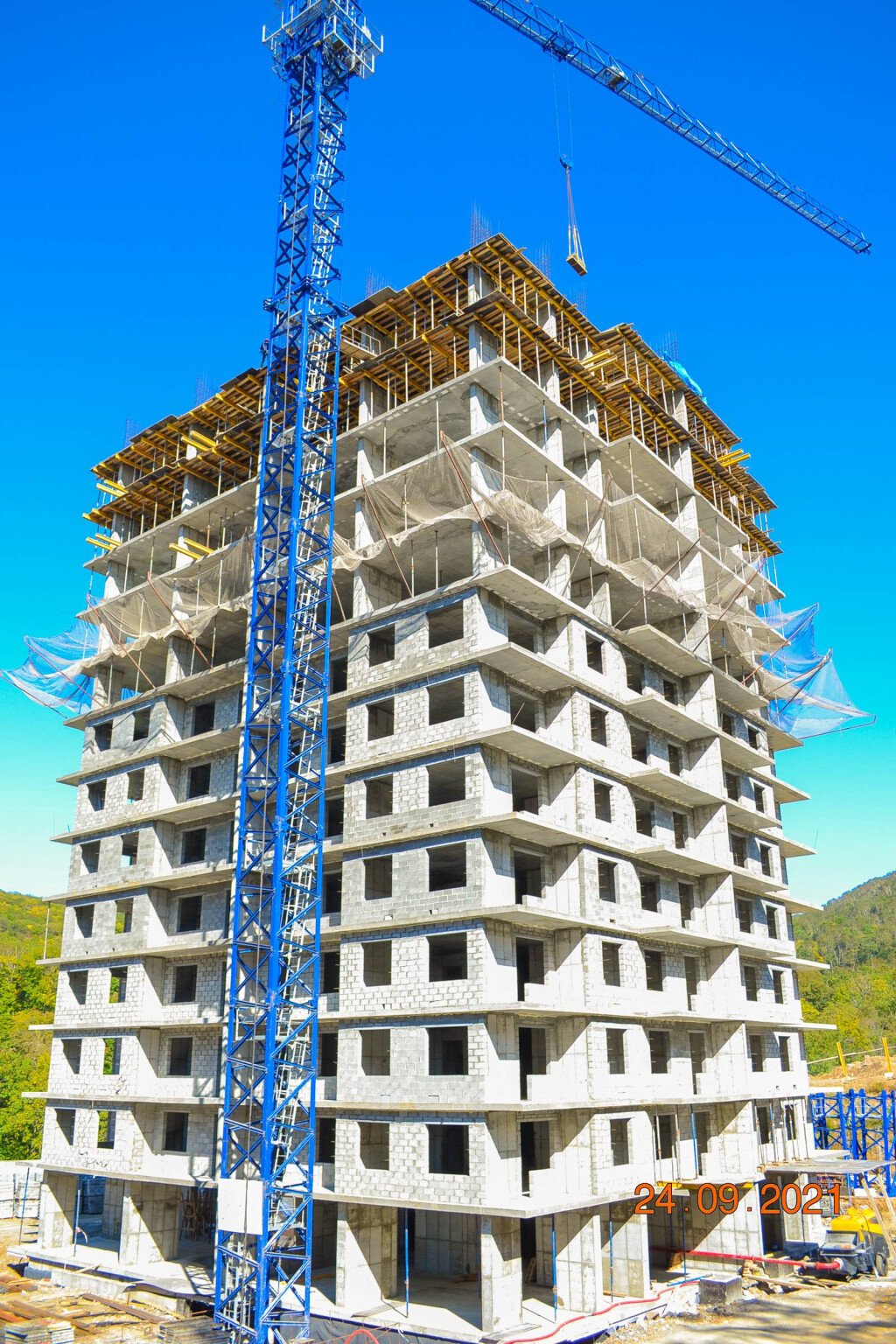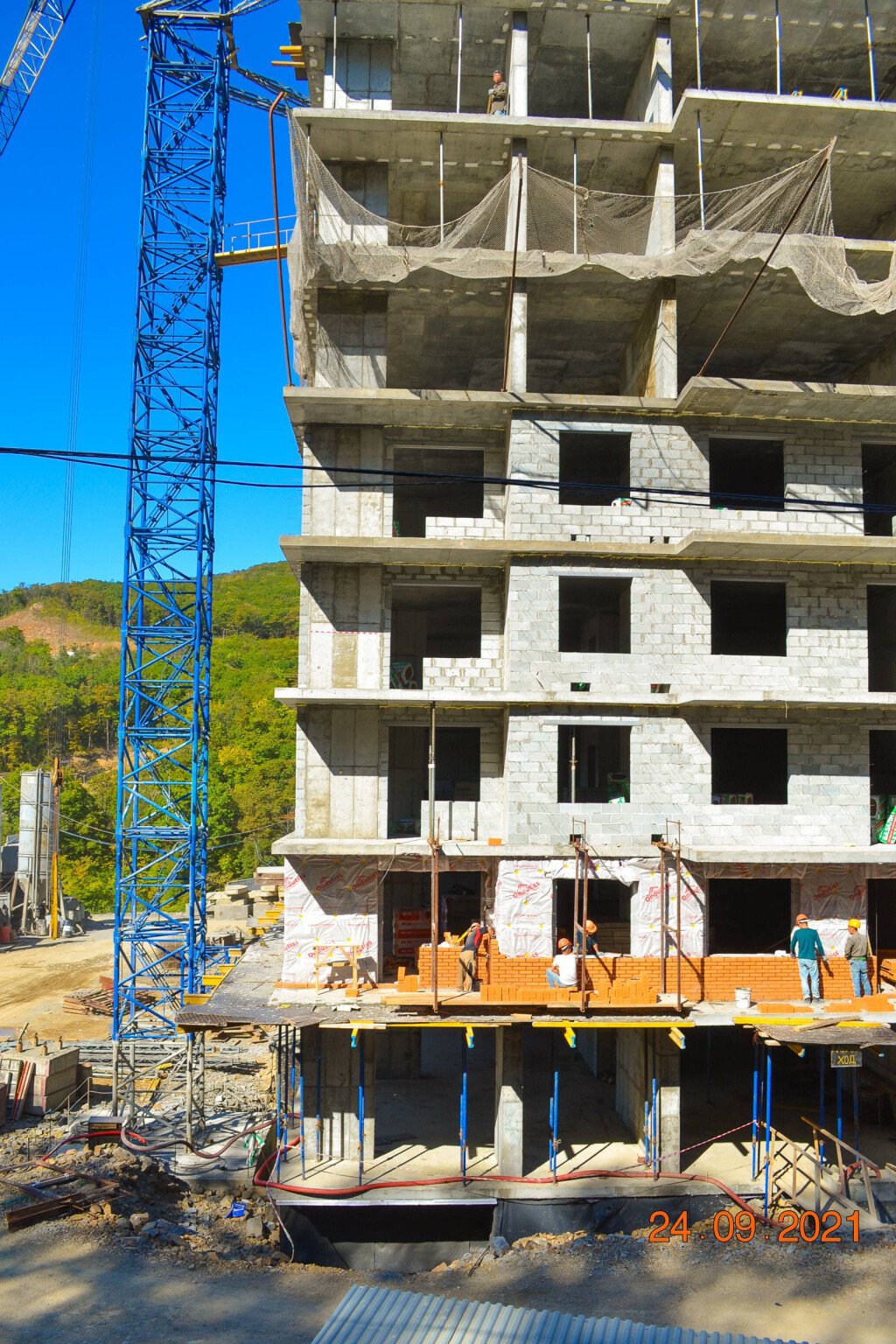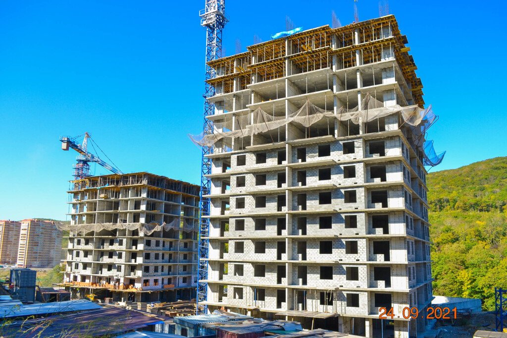 Работы по возведению монолита на первом доме идут уже на 14-м этаже, а на втором доме на 10-м этаже. Продолжается возведение наружных стен, а также начались работы по кирпичной кладке стен.