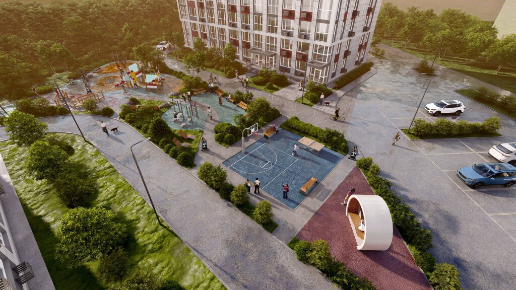 ЖК «НОВЫЙ» гармонично вписывается в окружающую природную среду. Особое внимание уделяется концептуальному благоустройству дворовой территории, где жители смогут наслаждаться не только красивыми видами, но и комфортным пространством для отдыха и досуга.