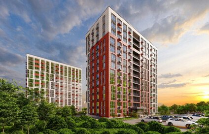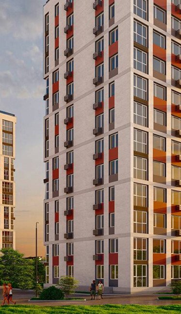 • 2 дома с авторской архитектурой высотой 13 жилых этажей;